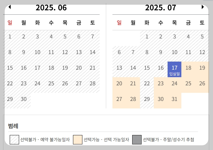 | 구분 | 예약 일정 | 숙박 가능일 |