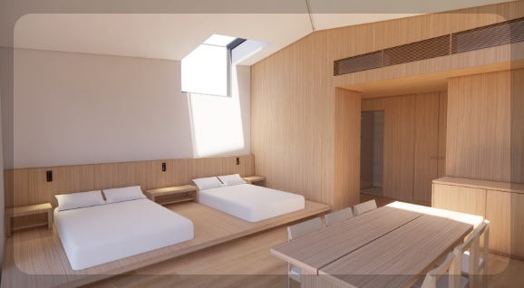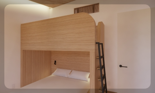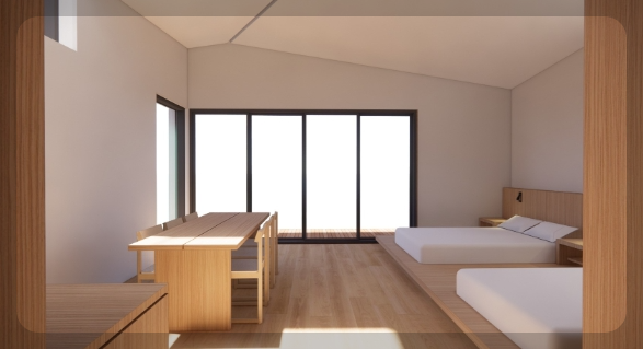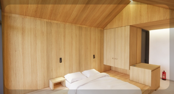 객실 내부는 최신 힐링 감성 인테리어로 꾸며져 있어요. 특히 트리하우스 객실은 14m 높이의 나무 위에 자리해 색다른 분위기를 자아냅니다. 기본적인 침구류는 물론, 전자레인지, 냉장고, 에어컨, 전기포트 등 숙박에 필요한 장비는 모두 구비되어 있어요.